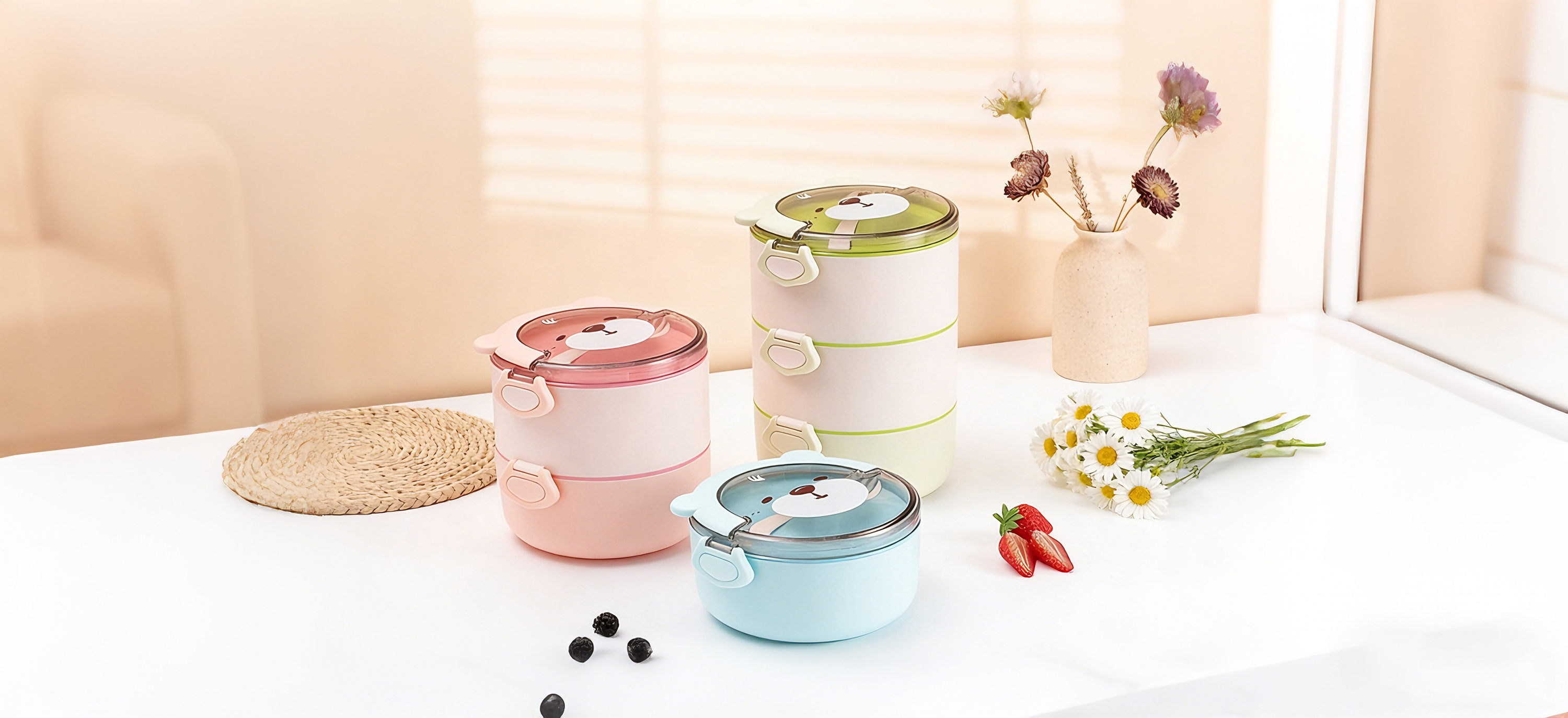 圓形卡通手提飯盒 上班族便攜微波加熱便當盒