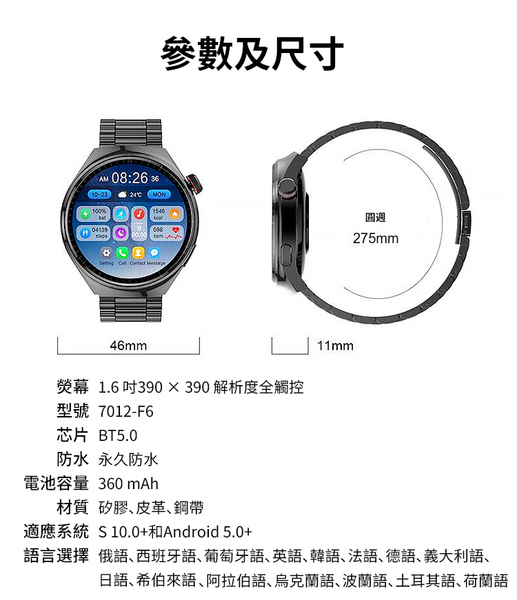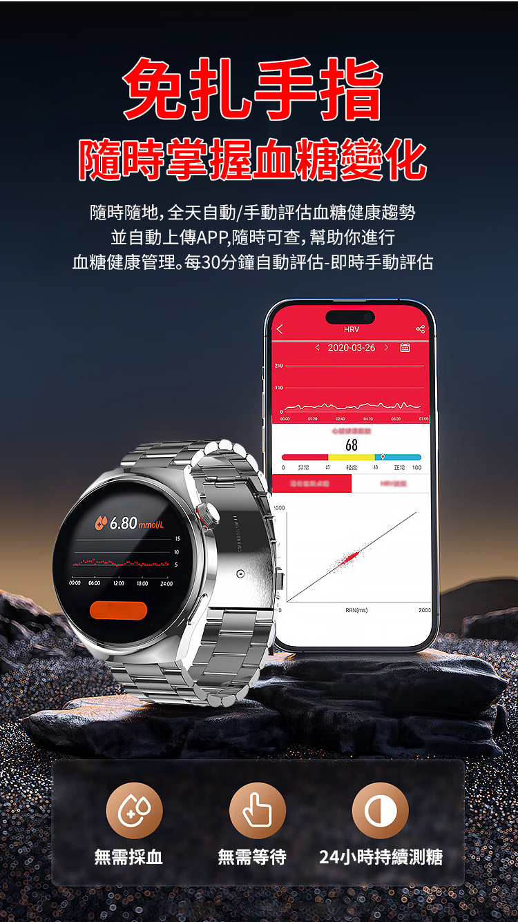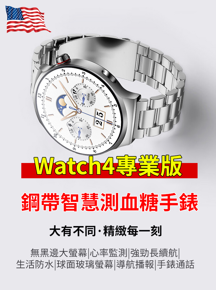 鋼帶Watch4 Pro血糖手錶|超級健康智能手錶|全能監測|商務旗艦